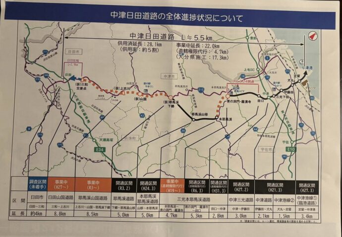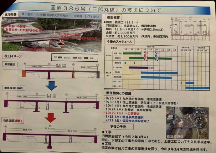 ↑ 中津日田道路整備状況      ↓ 三郎丸橋の復旧について