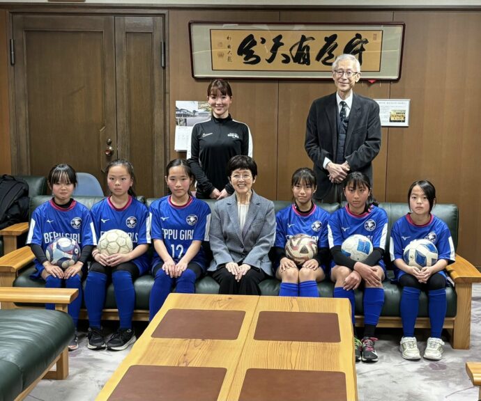 がんばれ❢❢未来の「なでしこ」たち⚽ 2026/02/02 日田玖珠の女子小学生サッカーチーム「日田玖珠ガールズ」が、別府市のチームと合同で九州大会を勝ち抜き、滋賀県で開催される全国大会に出場することになり、椋野市長にその報告と決意表明を行いました 2年連続で全国大会に出場するガールズたちの健闘を祈ります (写真はチームの許可を得てアップしてます。)
