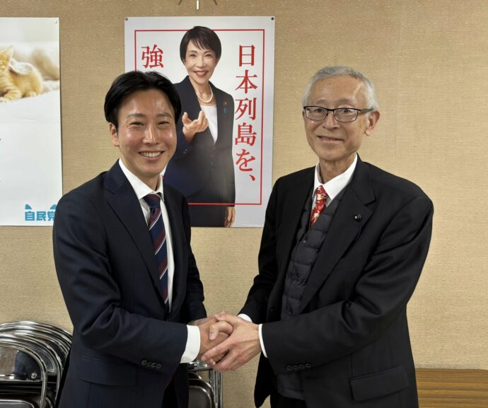 県議会で同期の衛藤博昭さんとは選挙後に初めて会って、感激の握手を交わしました![]()