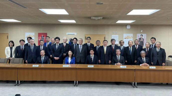大分県議会自民党会派の会合に、今回の選挙で見事に当選した4人の衆議院議員(前列向かって右から岩屋さん・広瀬さん・衛藤さん・白坂さん)の皆さんと古庄参議院議員がお見えになりました。